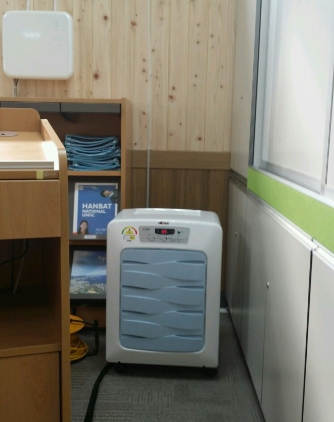 중학교 행정실은 넓은 공간은 아니지만, 주변환경과 반지하에 위치하여 2배의 제습용량이 되는 모델을 설치하였습니다.