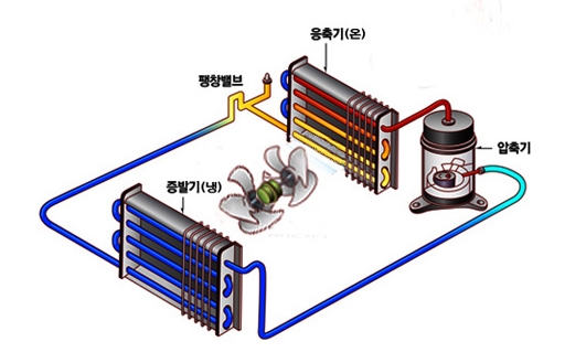 - 증발기와 응축기를 제어하는 팬모터가 1개인 경우, 약 32℃이상부터는 응축기 팬의 속도가 조절이 안됩니다. 열을 많이 뺏어야 하는데 모터가 1개이므로 제어가 불가능하다는 뜻입니다. 그러므로 고온 작업장에서는 성능이 현저히 떨어지게 됩니다.