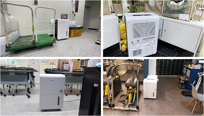 제습기는 습기가 있는 곳에서 사용하는 제품으로 창고, 사무실, 지하실, 엘이베이터복도, 교회 등 여러장소에서 사용하고 있습니다. 심지어 일반 가정 드레스룸처럼 작은 공간에도 습기가 심하면 제습기를 사용을 합니다.