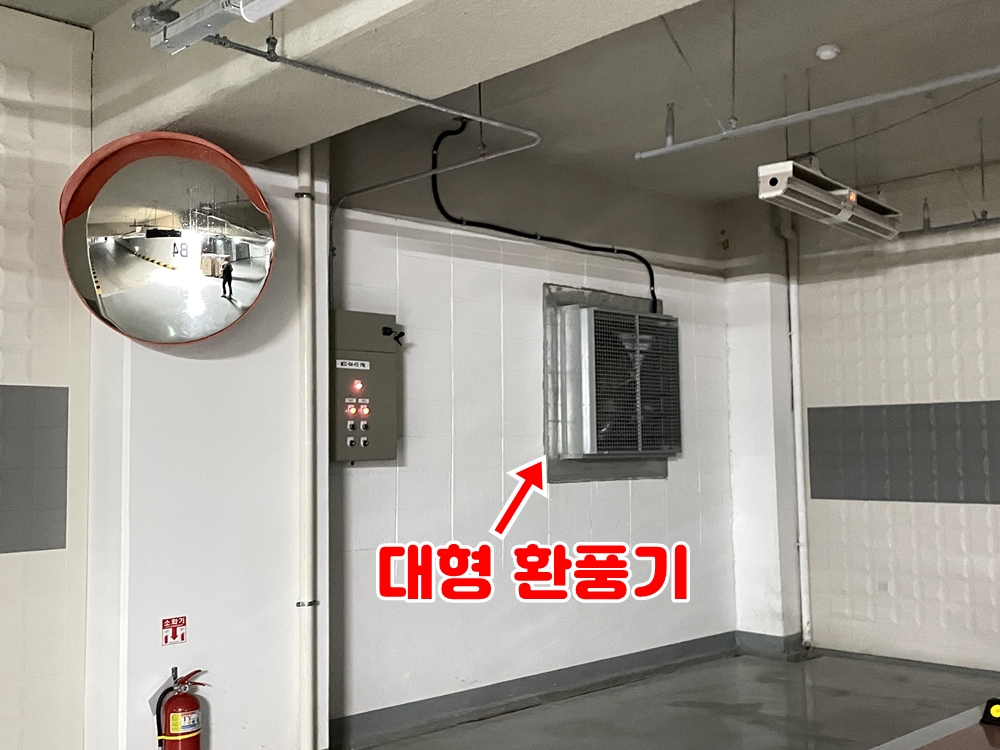 관리소장님 왈 "주차장에 습기가 심해서 대형 환풍기를 설치하고 24시간 가동하는데, 비가 오면 바닥과 벽에 결로가 더 생기는 것 같아요"라고 말씀하시더라구요