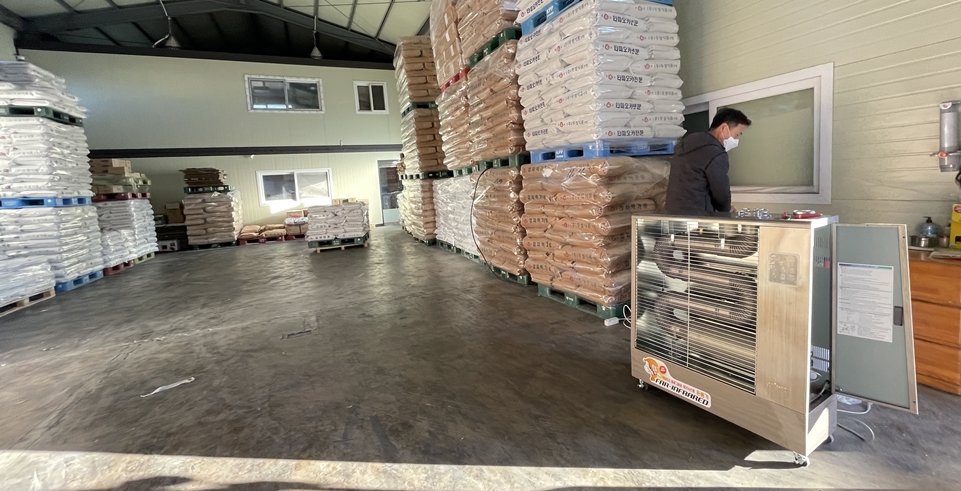 그러다보니 겨울이 항상 문제였습니다. 문을 닫고 일을 하자니 지속적으로 지게차가 왔다갔다 해서 작업능률이 오르지 않고 문을 열고 난방을 하자니 아무리 생각해도 난방자체가 불가능할 것같아서 고민중 공장난로 돈풍기를 알게되었다고 말씀하셨습니다.