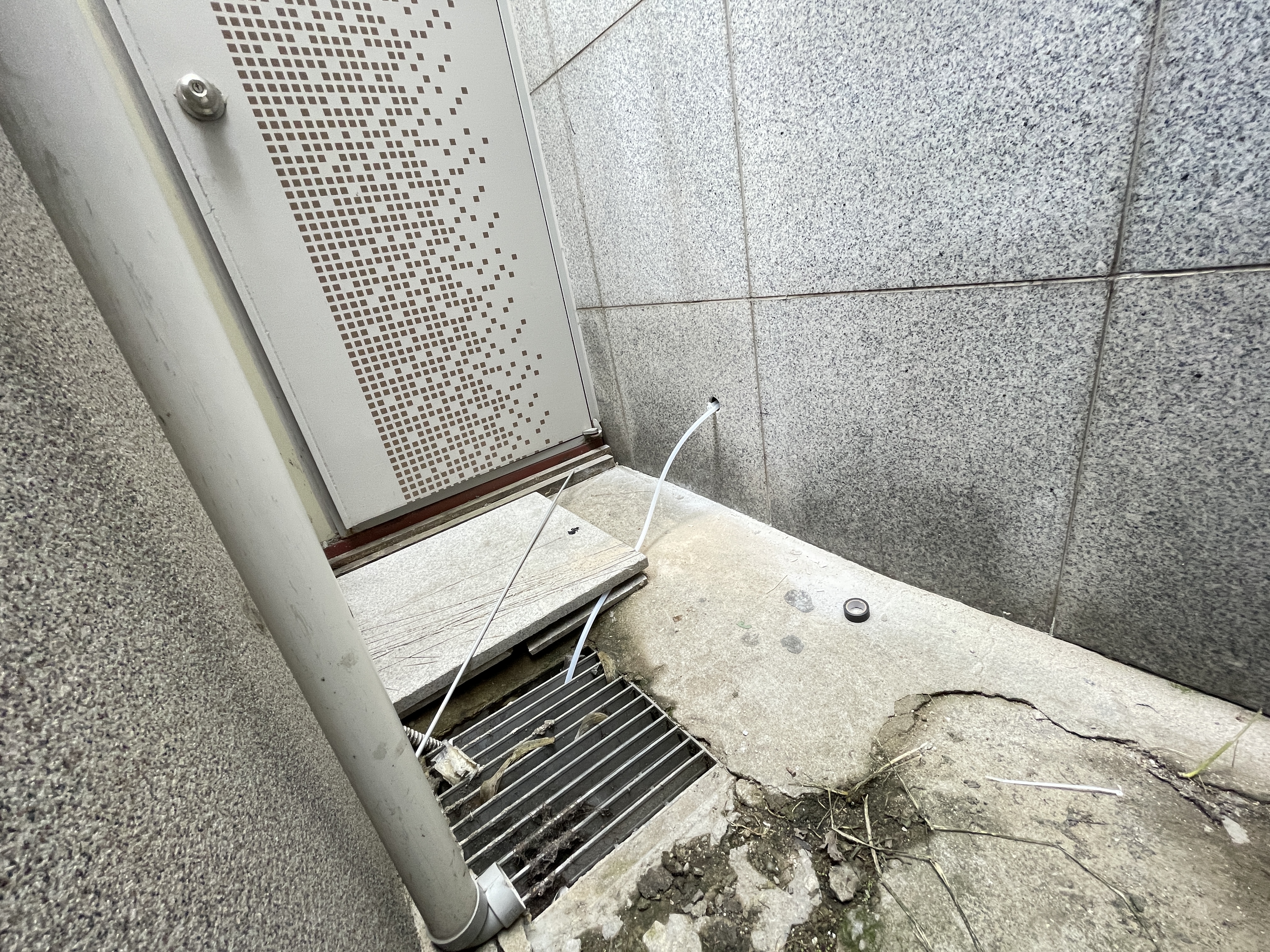 제습기는 배수로 작업이 제일 큰 작업인데, 교회 1층 배수로 자체가 없어서 벽을 타공해서 외부로 빼야했습니다.