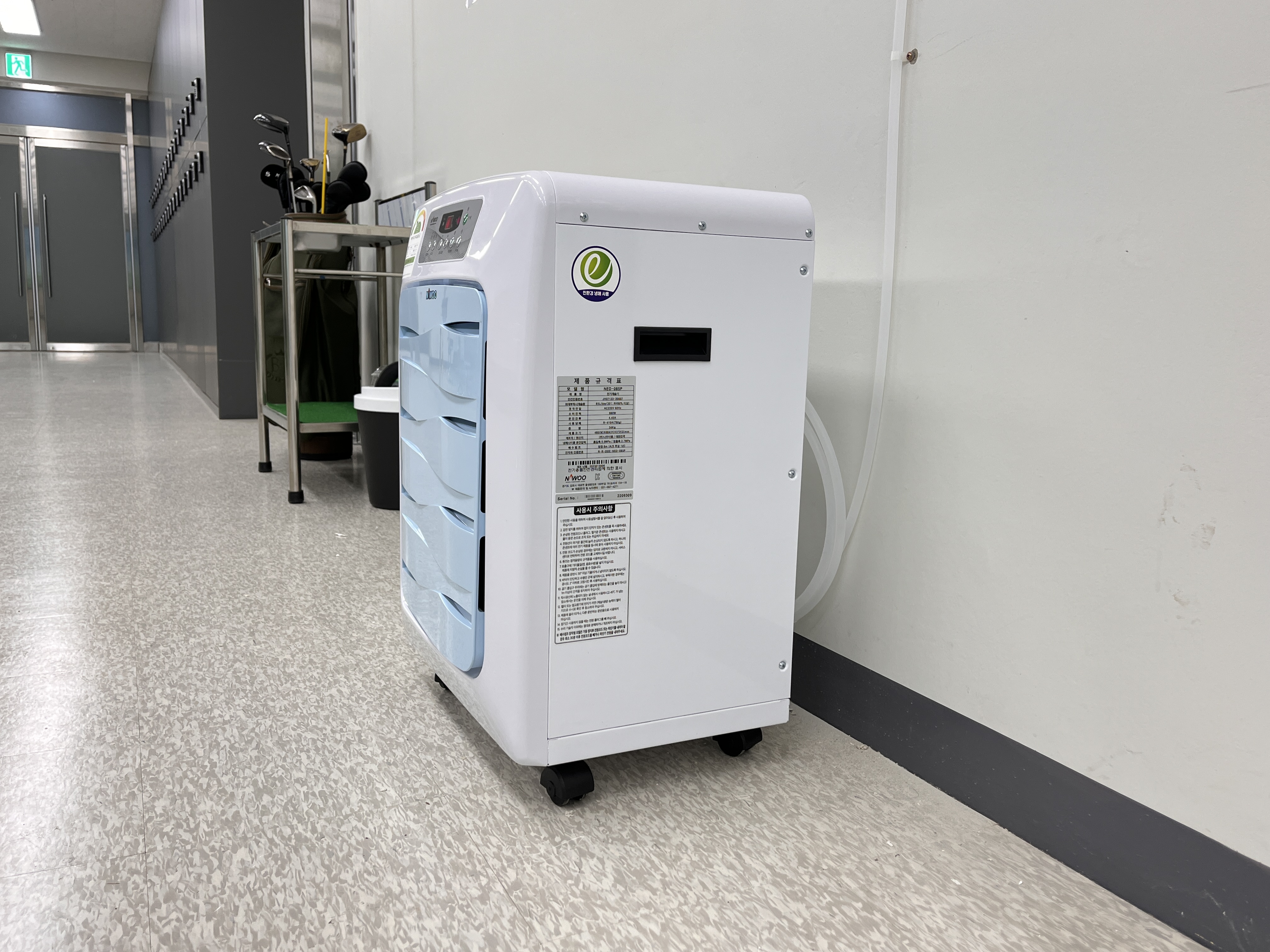 이곳 아파트 역시 체육시설들이 지하에 있다보니 습기피해가 발생하여 지난 여름에 습기피해를 입어 습기제거를 위해 제습기를 설치하게 되었습니다.